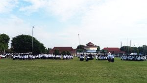 Santriwati Al Muaddib berpartisipasi, dalam kegiatan Upaca Hari Santri 2025 di Alun-alun kabupaten Cilacap.