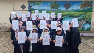Dalam rangkaian acara galang donasi dan penghimpunan dana untuk Palestina yang dilakukan oleh ACA Indonesia, para santri membentangkan payung Free Gaza sebagai wujud dukungan kepada rakyat Gaza