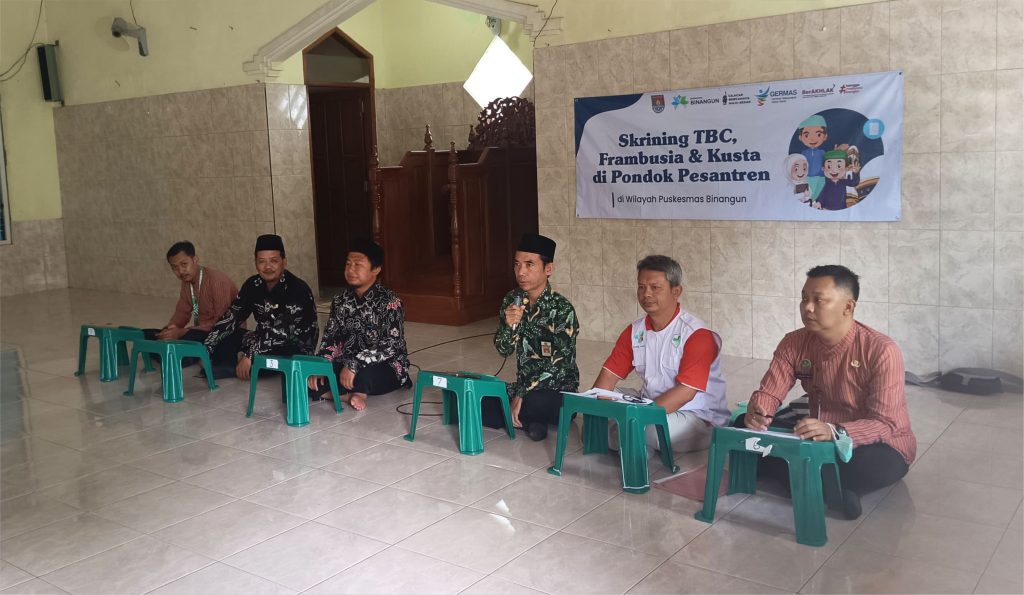 Ponpes Tahfidz Al Muaddib bersinergi dengan Puskesmas dan KUA Kecamatan Binangun untuk melakukan pemeriksaan kesehatan (skrining TBC) dan kebersihan lingkungan di lingkungan pesantren.